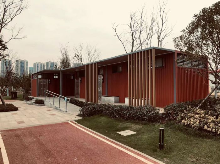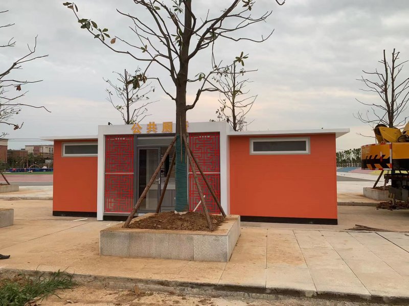 拼裝廁所;在廠里做好各個廁所部件,再到現(xiàn)場組裝在一齊,適合不易運(yùn)輸?shù)拇笮蛶_@座箱式廁所,女廁5個蹲位內(nèi)配工具間,男廁2個蹲位+2小便斗,第三衛(wèi)生間由殘疾馬桶、助力洗手盆和兒童馬桶、兒童洗手盆外加嬰兒臺等設(shè)施。廁所前后有窗,通風(fēng)采光,前部走廊裝有屋檐,防雨防曬。此廁所位于公路綠道邊,整體大氣,功能齊全,造型美觀,是一道難得的靚麗景觀!